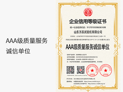 公司秉承“专业创造品质、服务传递价值”的经营理念,不断对产品进行完善、创新,大限度满足客户需求。实力铸就精品,信誉打造名牌,山东万辰试验机有限公司愿与社会各界朋友精诚合作,共展宏图!