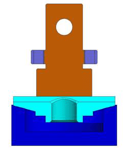将下扣碗结构放置在公司标准压缩夹具上,上夹具与下扣碗接触试压部分参照横杆接头尺寸设计,更接近实际工况,完成下碗口焊接强度试验。