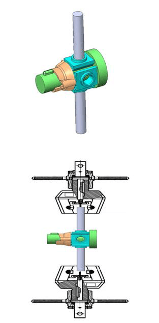 将横杆结构放置在公司标准压缩夹具上,上夹具做一空心压杆套在旋转支撑上,用上压板压空心压杆,完成横杆接头焊接强度试验。
