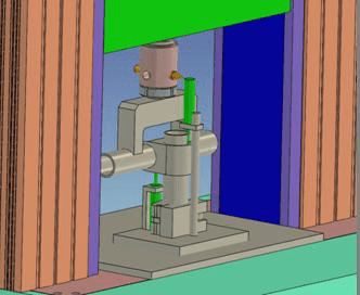 试验说明:抗滑性能试验装置一套(含两个位移计,量程15mm,)与破坏性能试验装置共用适用于扣件专用抗滑性能试验。通过上夹具对横向钢管施加一载荷P。绿色部分为两个位移计,位移计可拆卸,便于破坏试验实现。能测量试验过程中横向钢管相对竖直钢管位移Δ1和扣件与钢管相对位移Δ