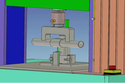 试验说明:该破坏试验与抗滑移试验可共用同一套试验夹具,位移计可拆卸,加力方式相同。上夹具对横向钢管施加载荷P,通过软件程控设置:测试荷载P(i)通过软件控制达到某值后或试样断裂时停止。防滑装置能防止扣件沿着竖直管向下滑移。
