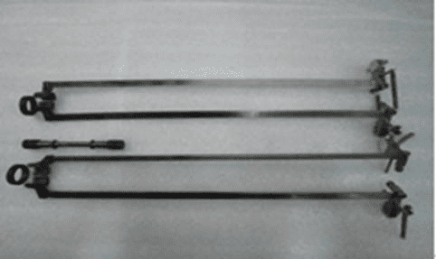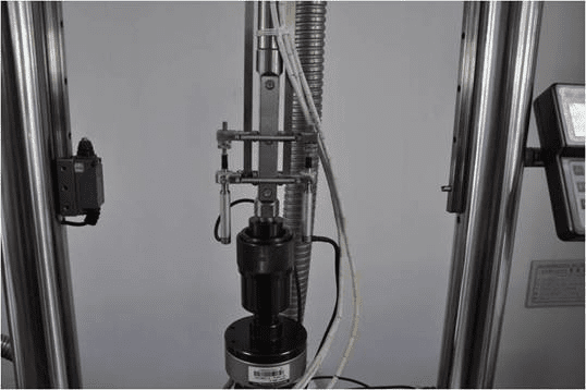 a、试样的变形通过引伸装置引出高温炉,变形引伸装置均采用优质高温合金制作,保证在高温环境下一定的强度,使得试样的变形量毫无保留的传递出来;