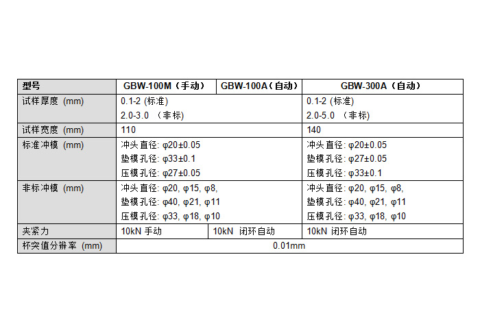 GBW系列杯突试验机是基于电子万能材料试验机进行设计,它适合于金属板材与带钢的杯突实验,从而对其塑性变形性和延展性进行评估。杯突试验试样为金属板材,其厚度范围为0.1毫米-5毫米;本系列试验机设计最大冲压能量为300KN;预夹紧装置可选择伺服加载泵或者手动泵。