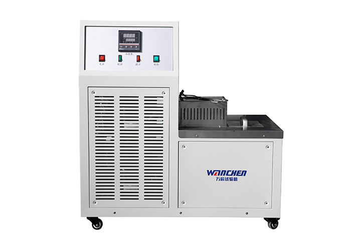 目前国内理化试验室的低温冲击试验,主要采用干冰或液态加酒精,这种最原始方法非常麻烦危险,且控温精度低,因为普通温度计误差很大,从而导致试验温度偏差很大,同时由于没有搅拌机构而使整个温度场内的不均匀梯度很大。另外,还有少量试验室采用半导体制冷槽,但这种低温装置极易损坏且不实用,主要原因是必须提供足量且不间断的冷却水,其次是半导体硅堆极易损坏,且降温速度很慢。