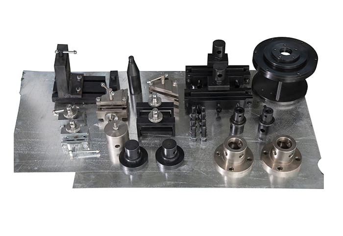 5、 夹具和附具:根据测试需求,试验机可能配备不同类型的夹具和附具,如拉伸夹具、压缩夹具、弯曲夹具等,用于固定和夹持试样。