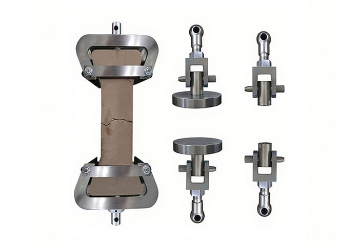5、 夹具和附具:根据测试需求,试验机可能配备不同类型的夹具和附具,如拉伸夹具、压缩夹具、弯曲夹具等,用于固定和夹持试样。
