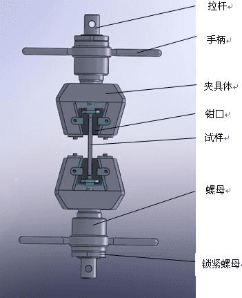 试验说明:采用楔形拉伸夹具,上下夹具能对钢管两端进行有效的夹持。用V型钳口夹持试验,能刚好的保证试样不被夹伤,保证了试验的有效性。