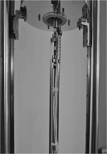 a、试样的变形通过引伸装置引出高温炉,变形引伸装置均采用优质高温合金制作,保证在高温环境下一定的强度,使得试样的变形量毫无保留的传递出来;