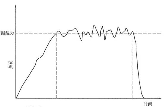 材料测试试验软件在试验数据处理上会舍弃撕裂时未切口长度的前20mm以及最后5mm的负荷值,取其余50mm未切口长度上撕裂负荷的平均值。当负荷-时间曲线为波浪形平台时,软件通过波浪形曲线划一条平行于横轴的中线,自动记录这一中线所对应的负荷,记作试样的撕裂力。