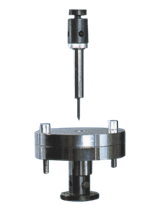 穿刺夹具的钢针直径1.0mm,直径顶端半径为0.5mm的圆形,夹具下半部采用上下压板的方式固定试样,装直径为100mm试样时先把上压板取走,把试样安装在上、下压板之间,装上上压板,用内六角圆柱螺钉固定紧试样。