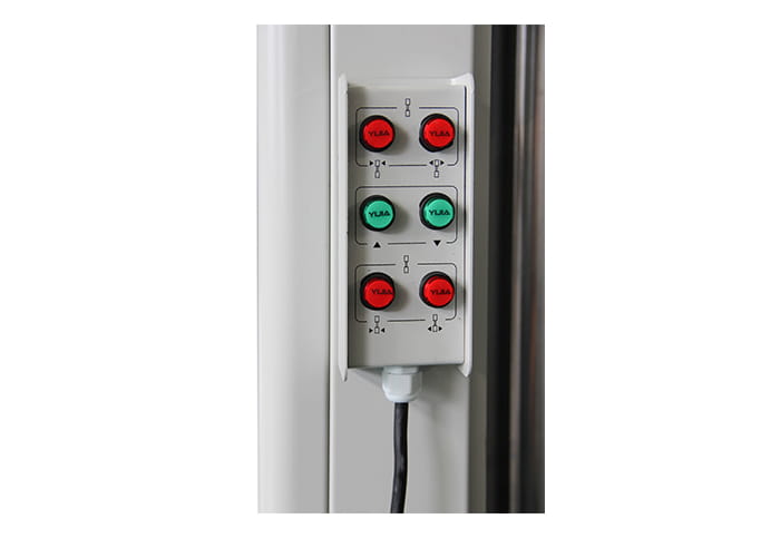 该产品主机是双空间结构,上横梁与下横梁之间为拉伸空间,下横梁与试台之间为压缩空间,试验空间通过链轮和丝杠旋转带动下横梁上下移动来自动调整。上下横梁设有内置式液压控制的楔形夹紧钳口,标准机型配有V型和平面型夹块用于夹紧圆柱试样和平板试样做拉伸试验;标准机型的下横梁底端配有上压板,试台上设有带球面副的下压板,可直接做压缩试验。